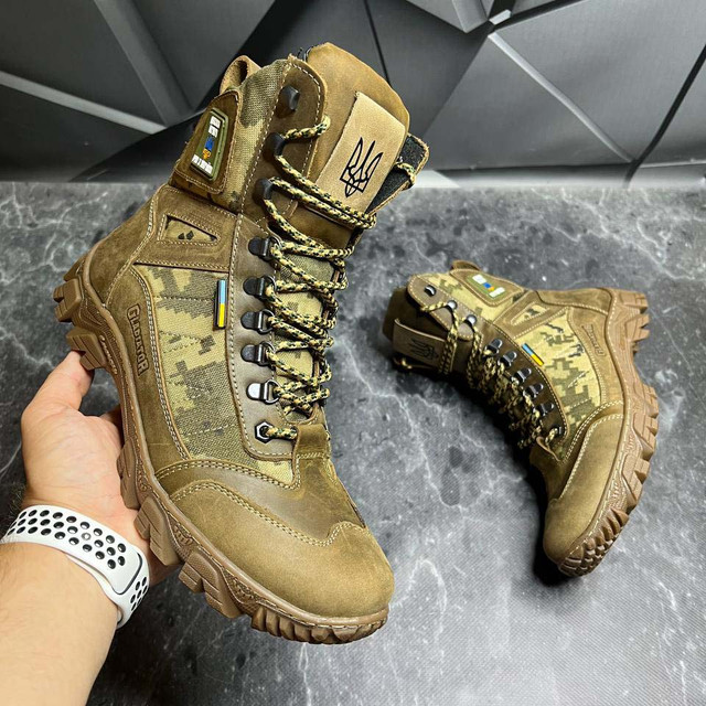 Чоловічі тактичні берці демісезонні койот піксель з гербом, військові черевики весна осінь, армійське взуття демісезон 40-46