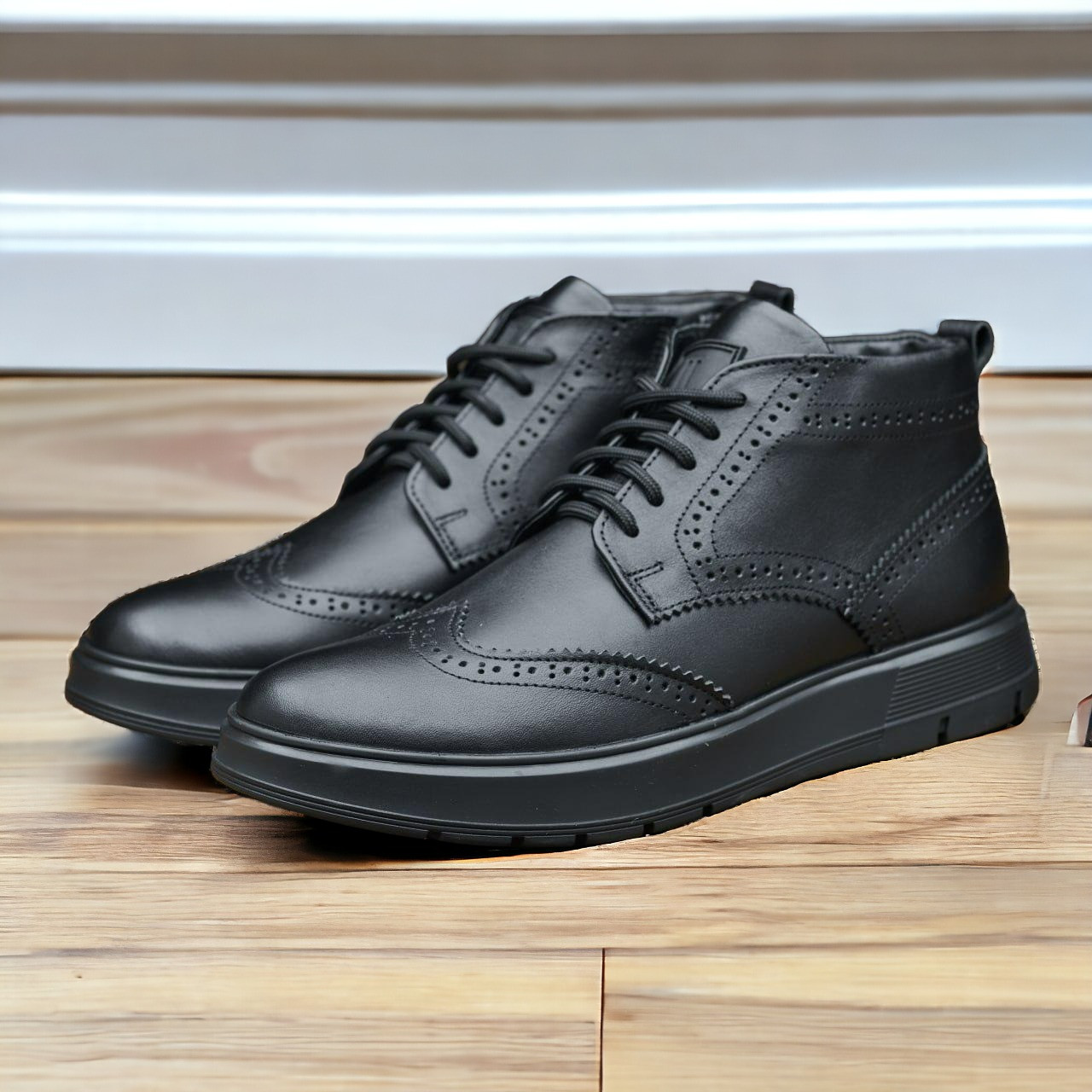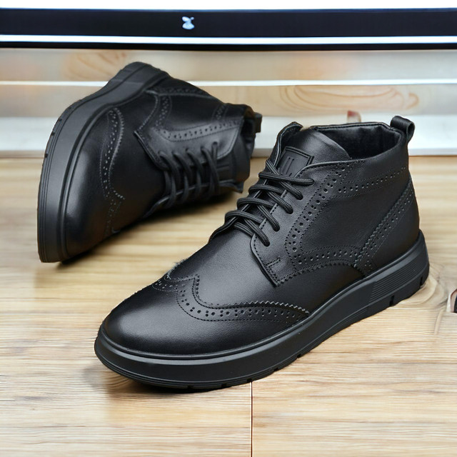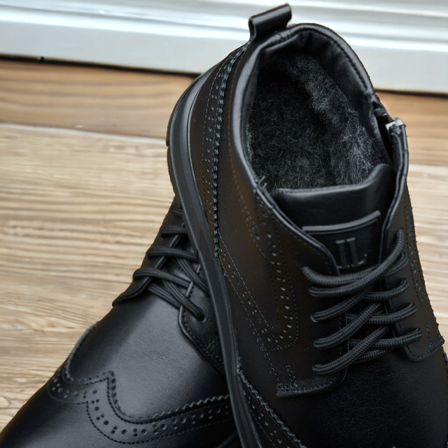 Чоловічі зимові черевики з натуральної шкіри – це міцне, надійне чоловіче взуття на зиму. Головна якість таких черевиків – це зносостійкість. Шкіряне взуття прослужить удвічі, а то й утричі довше, ніж вироби зі штучних аналогів. Натуральна шкіра пристосовується до температурних змін, добре зберігає тепло, не тріскається на морозі. Вона добре пропускає повітря, дозволяючи ногам дихати, і не даючи надто потіти. Натуральний внутрішній утеплювач збереже тепло та забезпечить комфорт вашим ногам.