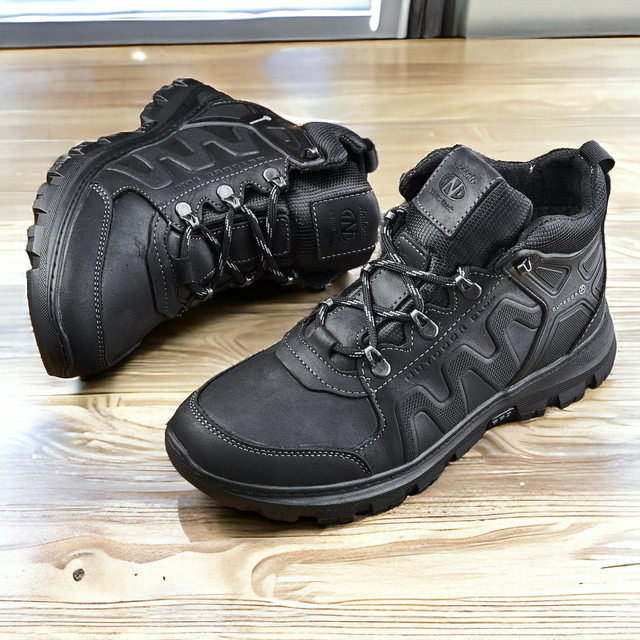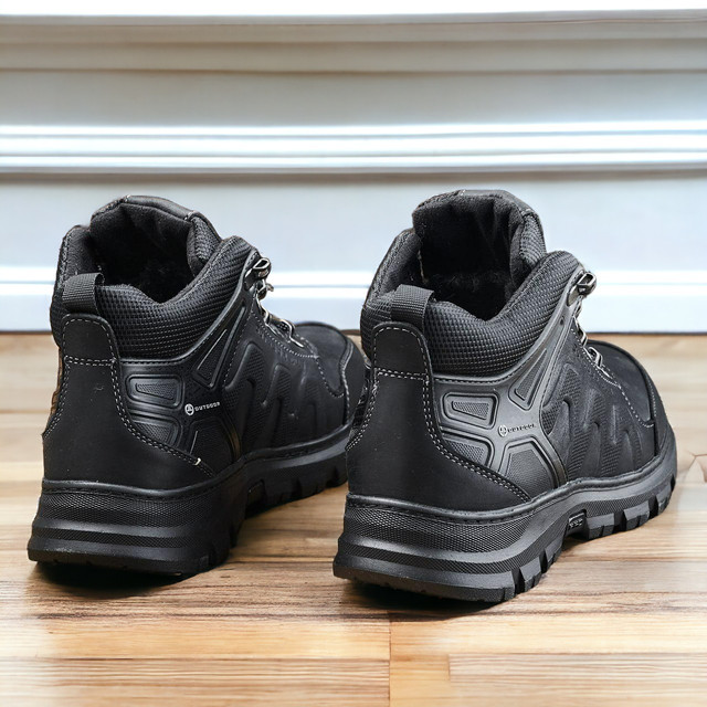Зимові шкіряні черевики, кросівки чоловічі чорні утеплені з натуральної шкіри на хутрі, чоловіче взуття на зиму