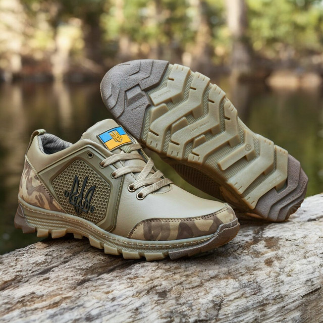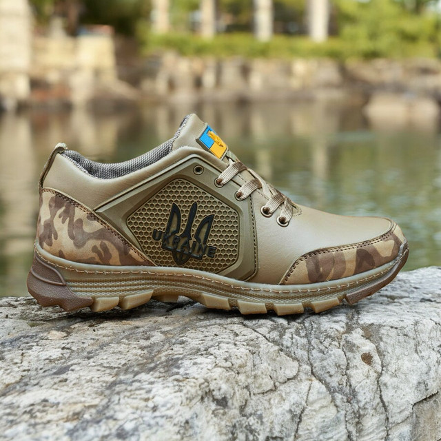 Чоловічі армійські кросівки кайот з тризубом на весняний-осінній сезон з натуральнго нубука для військовослужбовців зсу – це практичне, довговічне чоловіче військове взуття. Дані кросівки кольору койот (тактика) надійно прошиті та проклеєні, мають м'яку устілку. Військові весняно-осінні кросівки в світло-коричневому кольорі для чоловіків виконані з натурального зносостійкої натуральної шкіри. Підошва із глибоким протектором. Дуже зручні та легкі, непромокаємі, гарної якості.