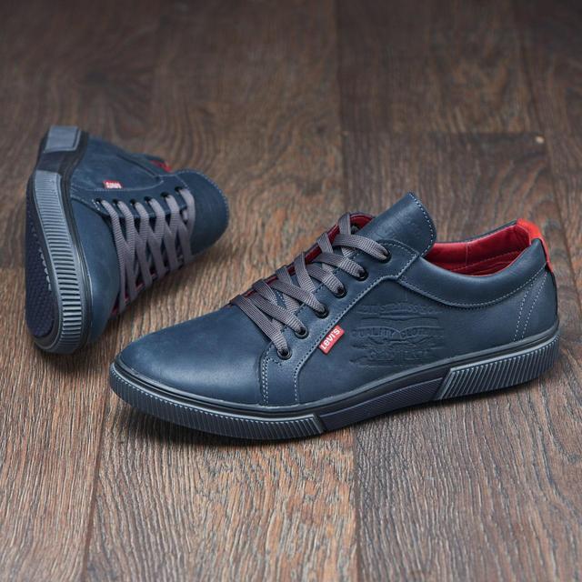 Чоловічі шкіряні кеди (натуральна шкіра) сині демісезонні, кеди для чоловіків на весну осінь, розмір 40-45
