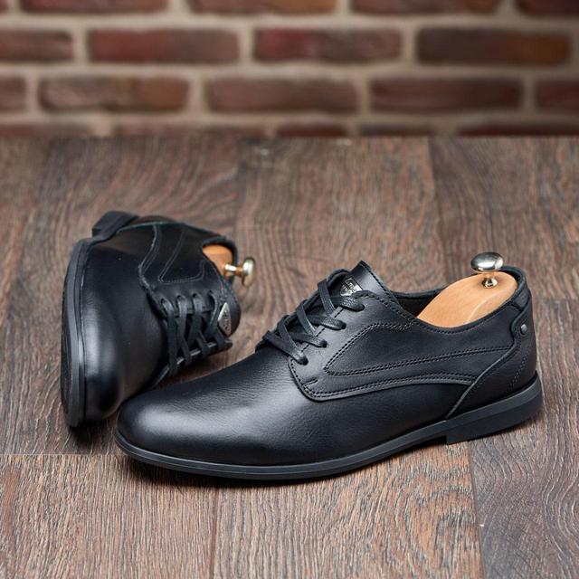 Чоловічі модні, зручні туфлі в чорному кольорі на весняний, осінній сезон із натуральних матеріалів - це стильне, комфортне чоловіче взуття на весну та осінь, яке прослужить Вам не один сезон. М'яка натуральна шкіра, зручна колодка та бездоганна якість пошиття роблять ці туфлі ідеальним вибором для впевненого та стильного чоловіка. Шкіряні туфлі зі шнурками поєднують класику і сучасний комфорт. Підходять як для ділових зустрічей, так і для прогулянок.