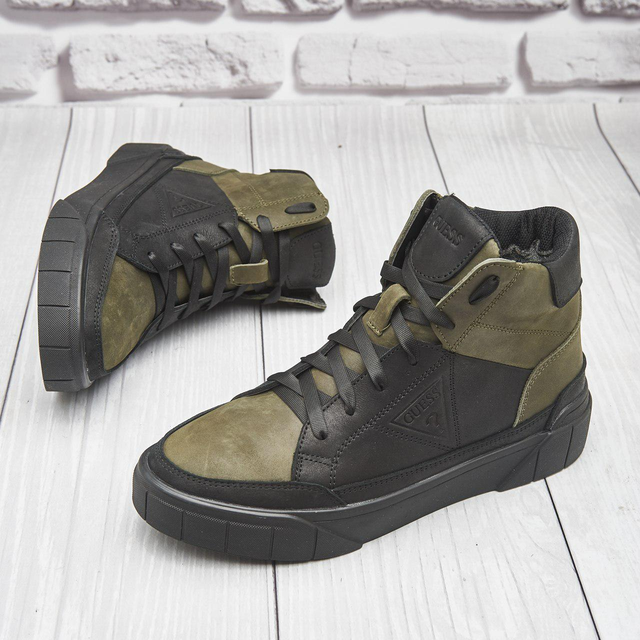 Зимові чоловічі шкіряні черевики, кросівки хакі утеплені з натуральної шкіри на хутрі на зиму для чоловіків, розмір 40-45