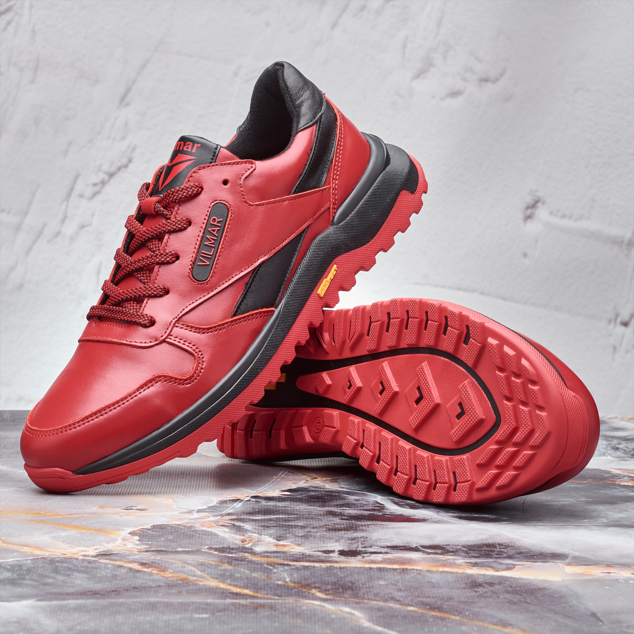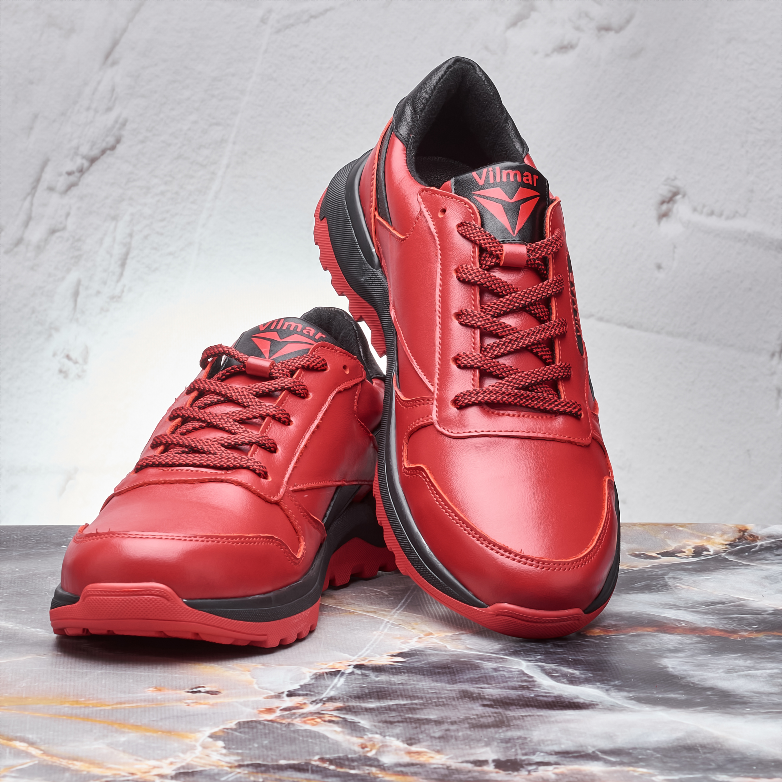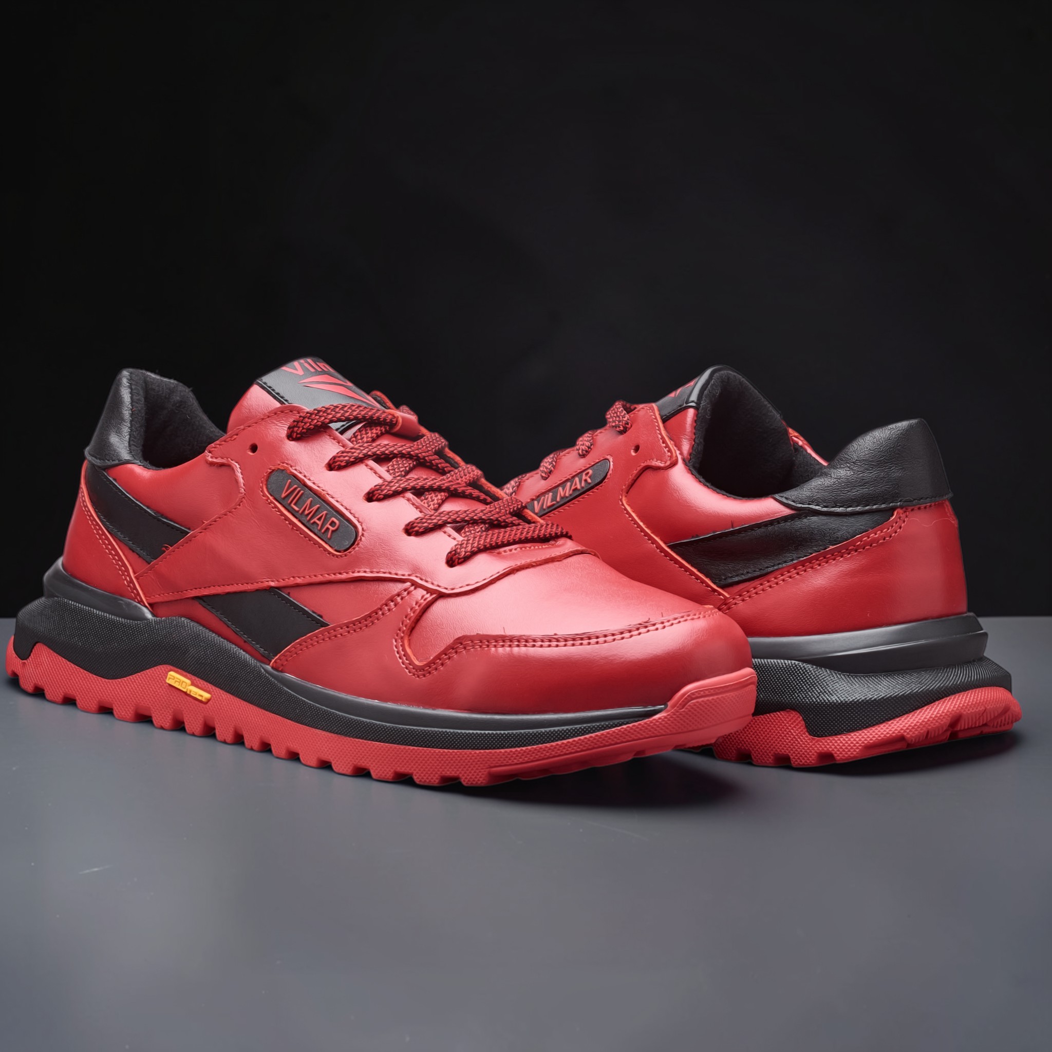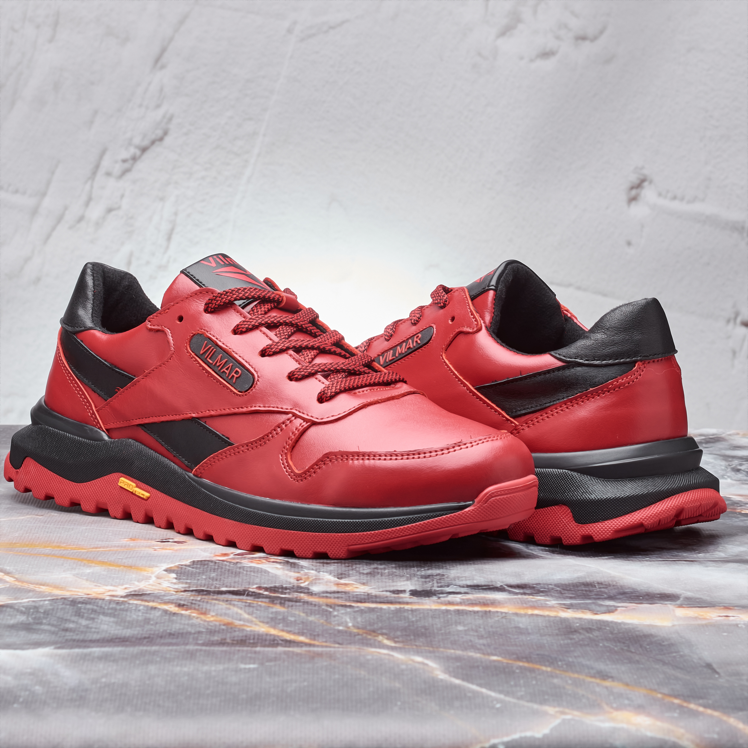 Чоловічі кросівки Vilmar з натуральної шкіри модель для тих, хто не губиться в натовпі. Насичений червоний колір одразу притягує погляд та підкреслює впевнений стиль.
