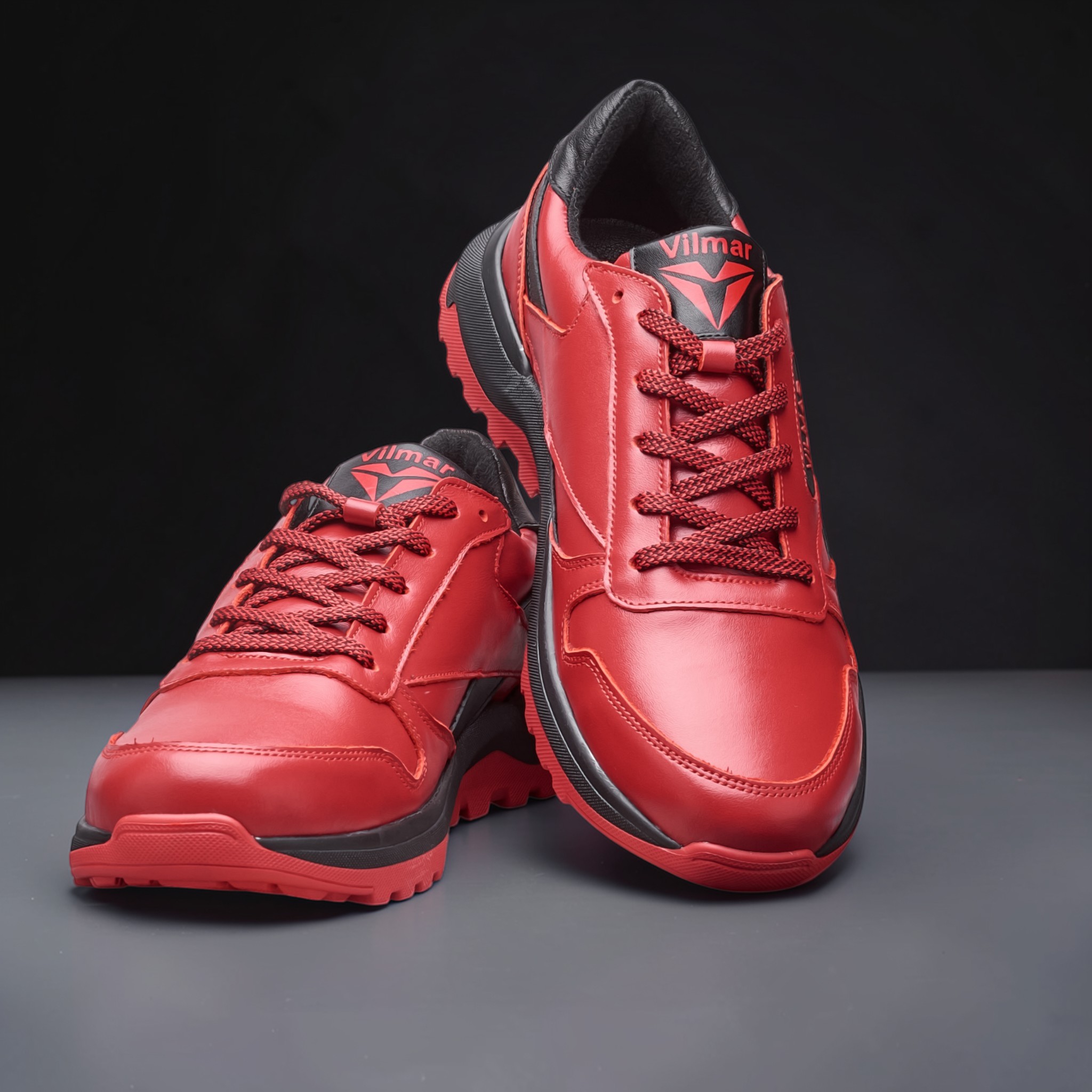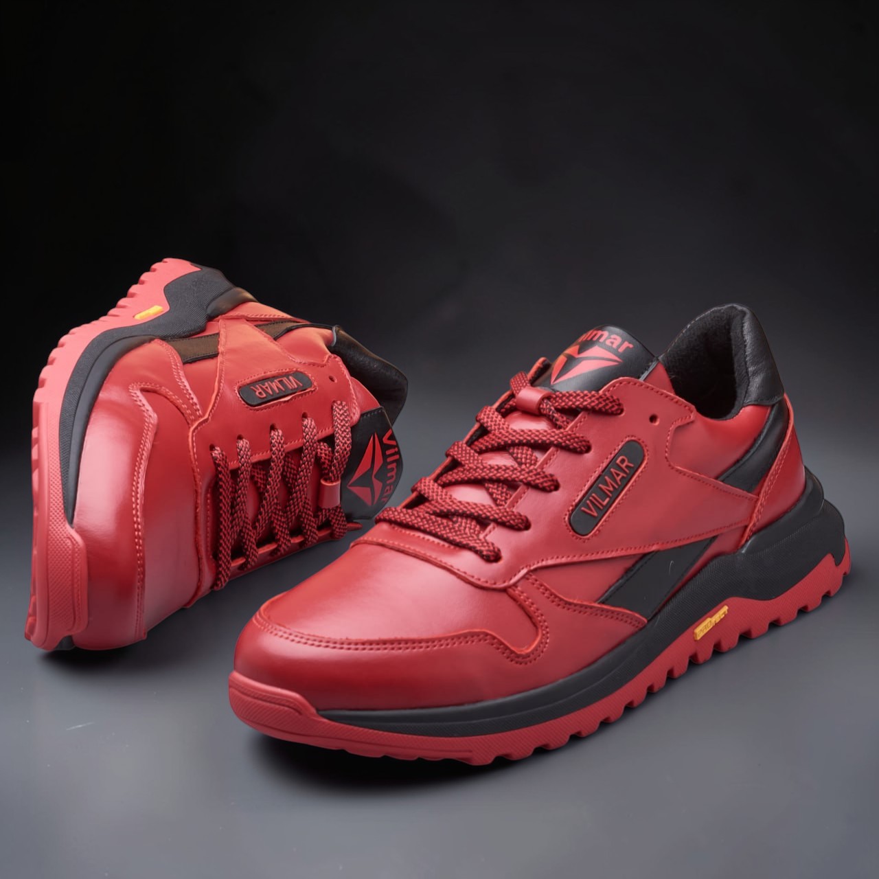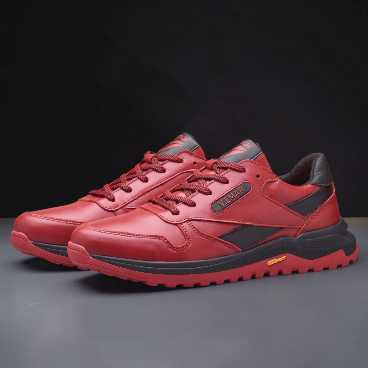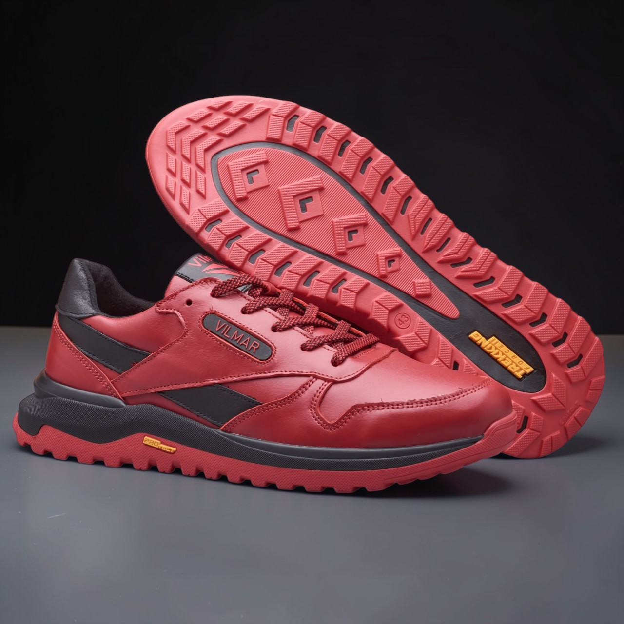 Чоловічі кросівки Vilmar з натуральної шкіри модель для тих, хто не губиться в натовпі. Насичений червоний колір одразу притягує погляд та підкреслює впевнений стиль.